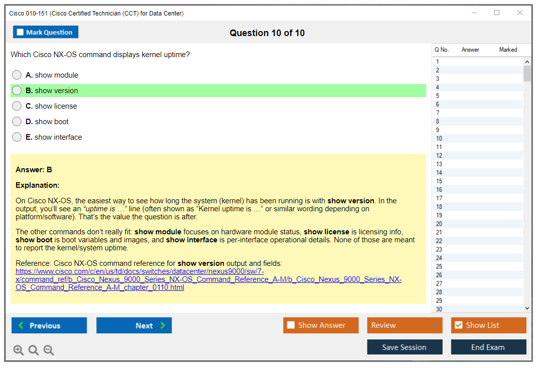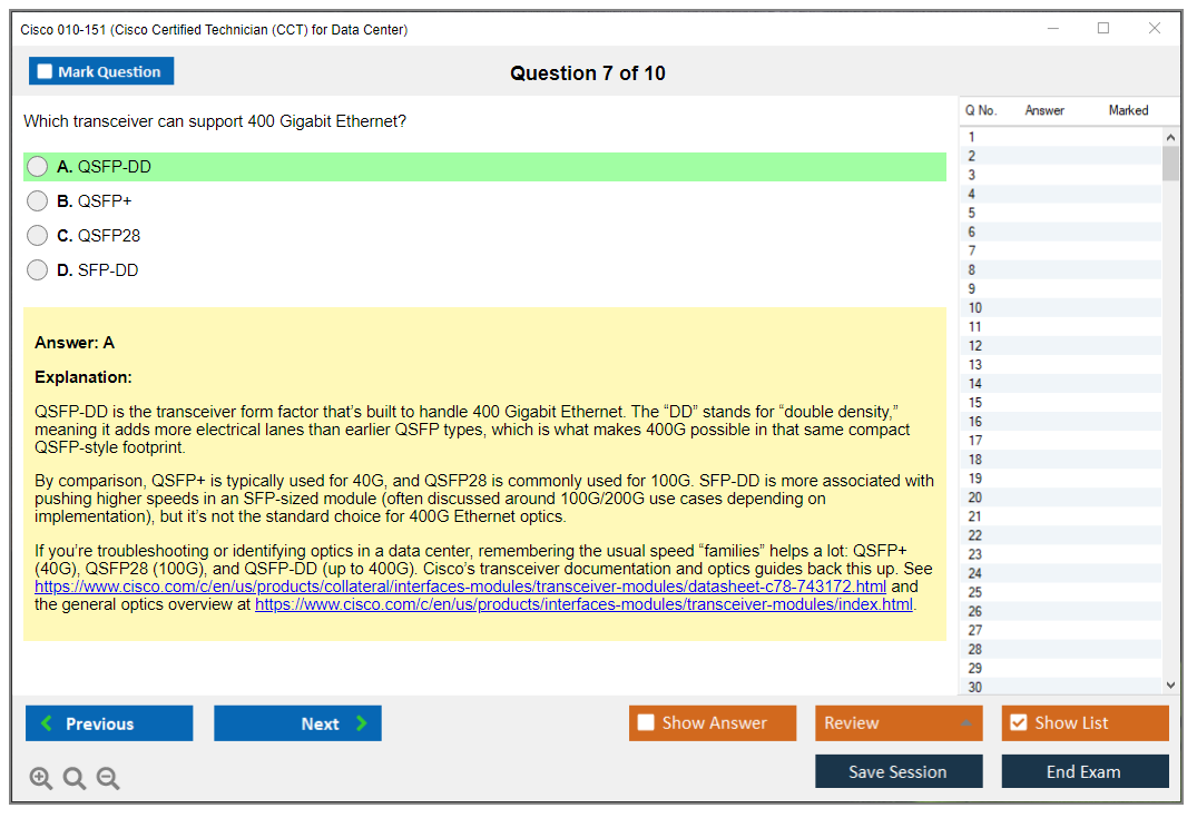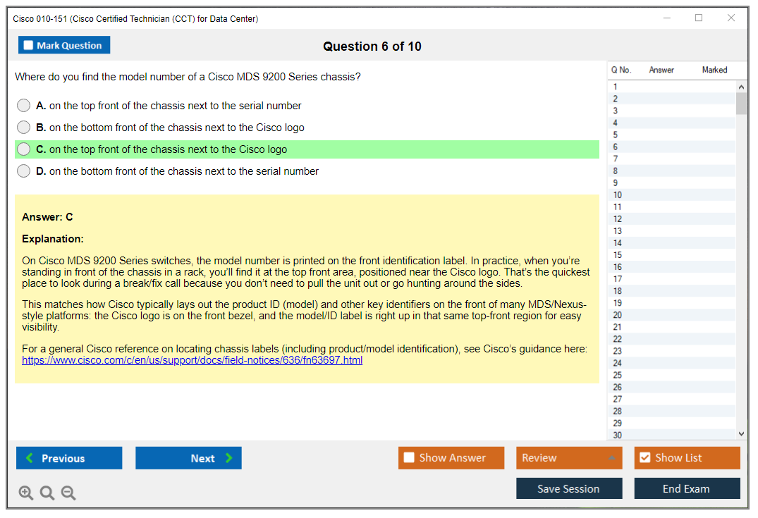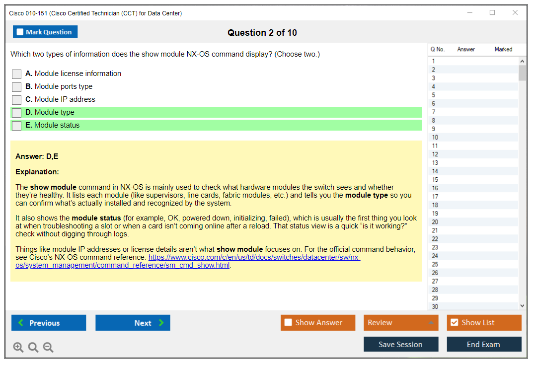 The Cisco 010-151 (Supporting Cisco Datacenter Networking Devices) exam is designed to test the knowledge and skills required to support and maintain Cisco data center networking devices.