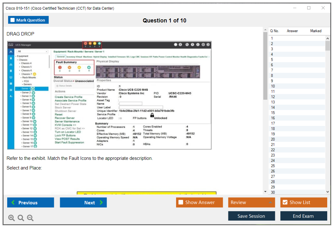 The question format of the Cisco 010-151 exam includes multiple-choice, drag-and-drop, and simulation questions.