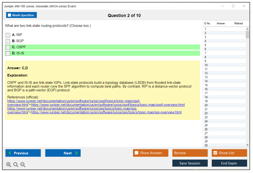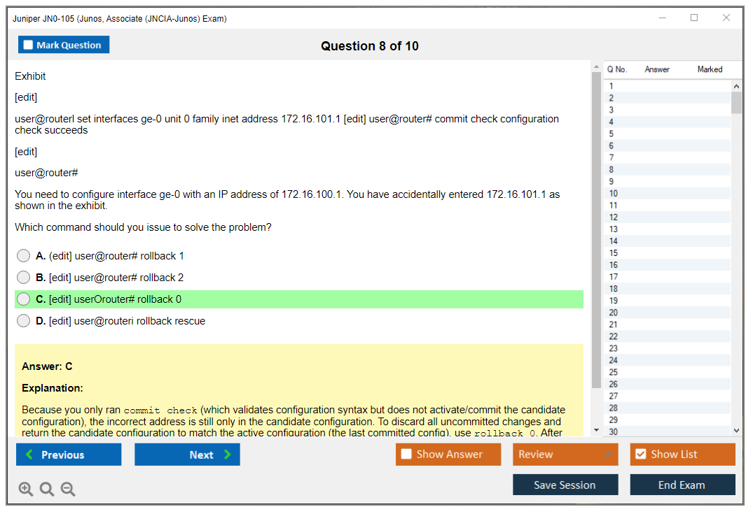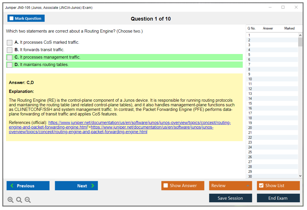 Dumpsboss Juniper Junos, Associate (JNCIA-Junos) Exam (JN0-105) Free Practice test Exam Simulator Test Engine redefines exam preparation with its cutting-edge blend of authentic test simulation, dynamic adaptability, and intuitive design. Recognized as the industry-leading practice platform, it empowers candidates to master their certification journey through these standout features.