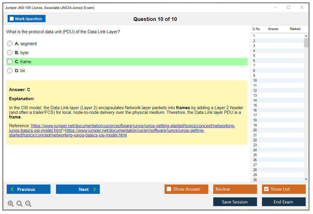 The Juniper JN0-105 Exam is part of the Juniper Networks certification program. It is aimed at individuals who want to demonstrate their understanding of networking fundamentals and Junos OS. The exam tests knowledge of the Junos OS, networking fundamentals, and basic routing and switching.