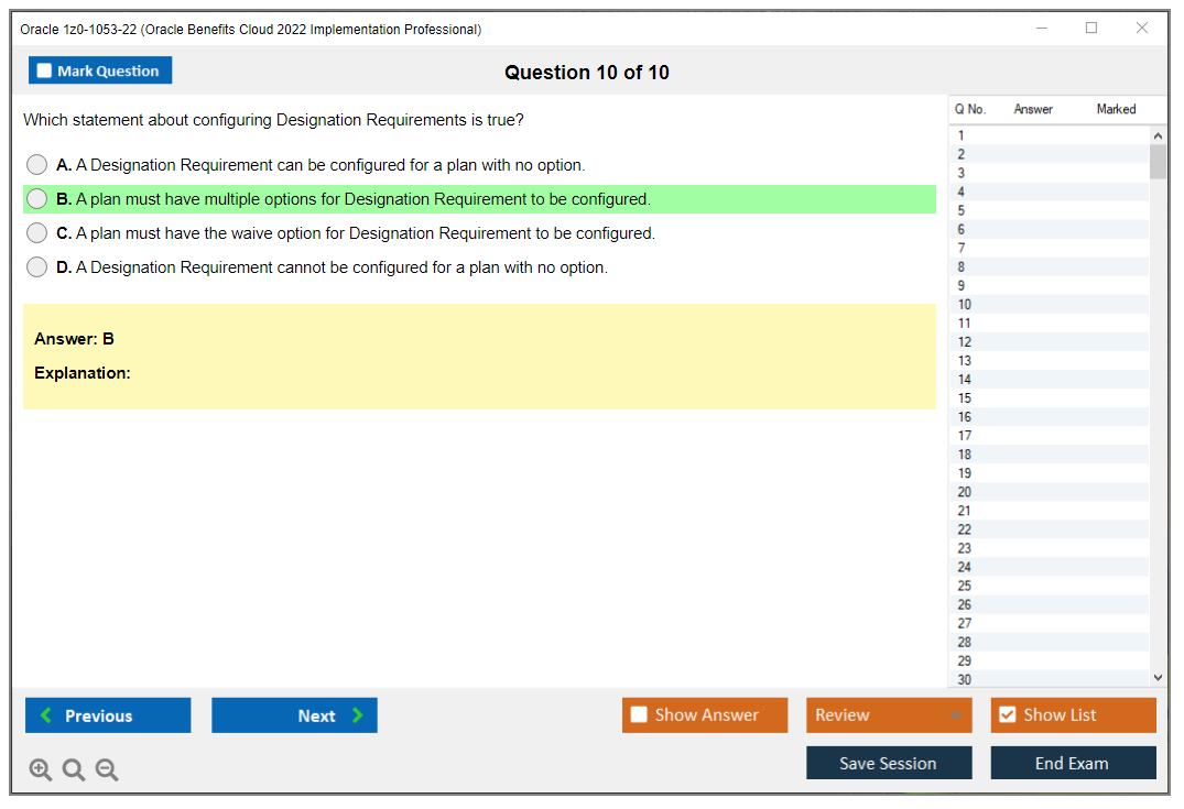 Dumpsboss Oracle Oracle Benefits Cloud 2022 Implementation Professional (1z0-1053-22) Free Practice test Exam Simulator Test Engine redefines exam preparation with its cutting-edge blend of authentic test simulation, dynamic adaptability, and intuitive design. Recognized as the industry-leading practice platform, it empowers candidates to master their certification journey through these standout features.