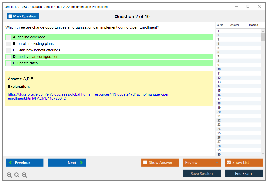 Note: Oracle 1z0-1053-22 (Oracle Benefits Cloud 2022 Implementation Professional) will not receive any new updates.